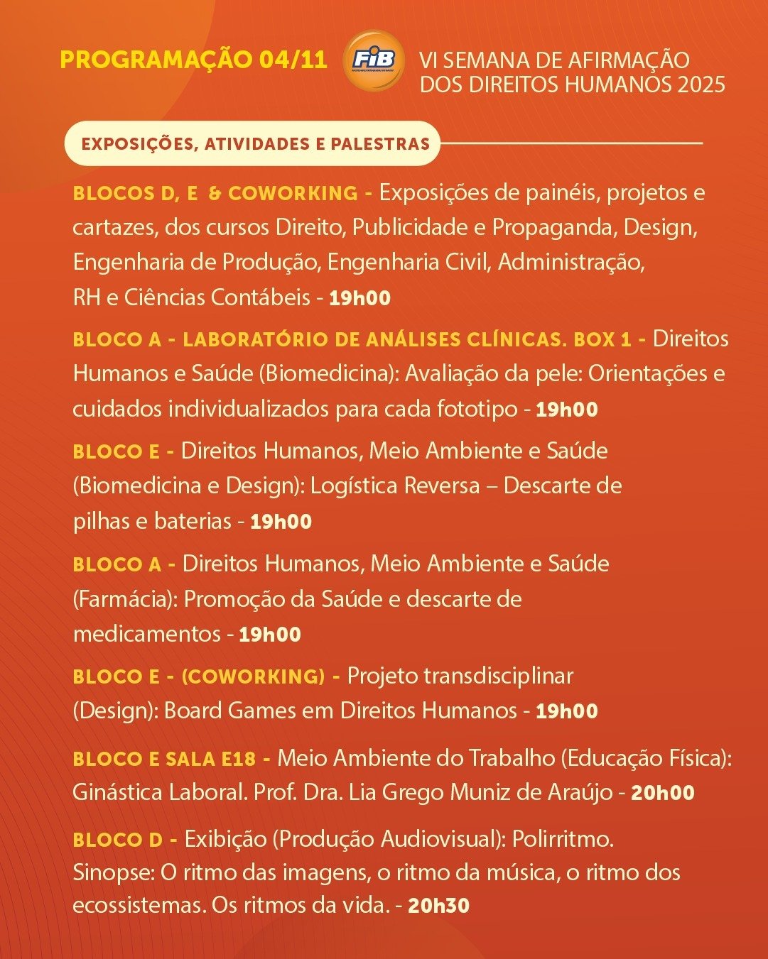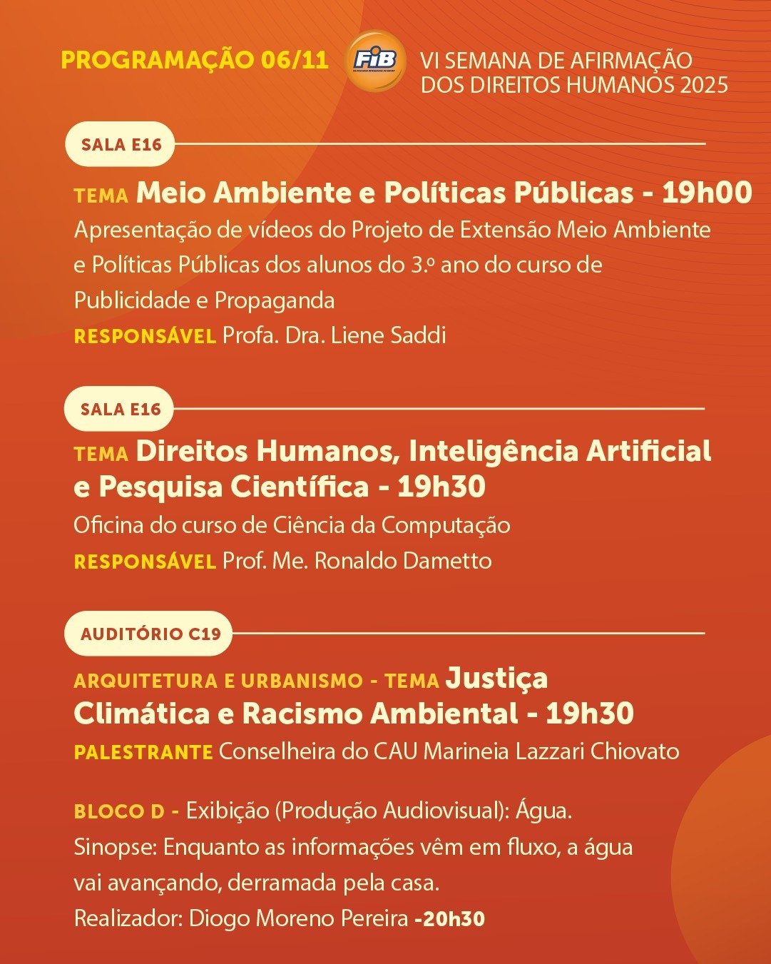 FIB promove a VI Semana de Afirmação dos Direitos Humanos
