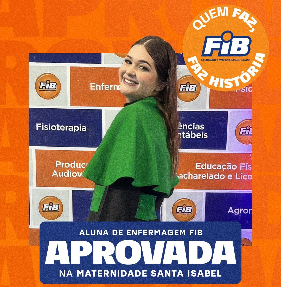 As Faculdades Integradas de Bauru (FIB) celebram a aprovação de Milenna Neto Comini, egressa do curso de Enfermagem, no concurso da Maternidade Santa Isabel, instituição de referência no atendimento materno-infantil de Bauru região;