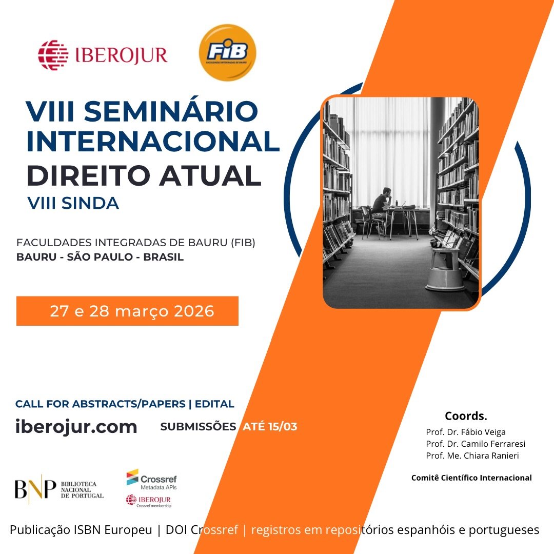 As Faculdades Integradas de Bauru (FIB) serão sede de um dos mais relevantes encontros acadêmicos da área jurídica, o VIII Seminário Internacional de Direito Atual (VIII SINDA), que acontecerá nos dias 27 e 28 de março de 2026. O evento acontecerá em modalidade híbrida, reunindo pesquisadores,...
